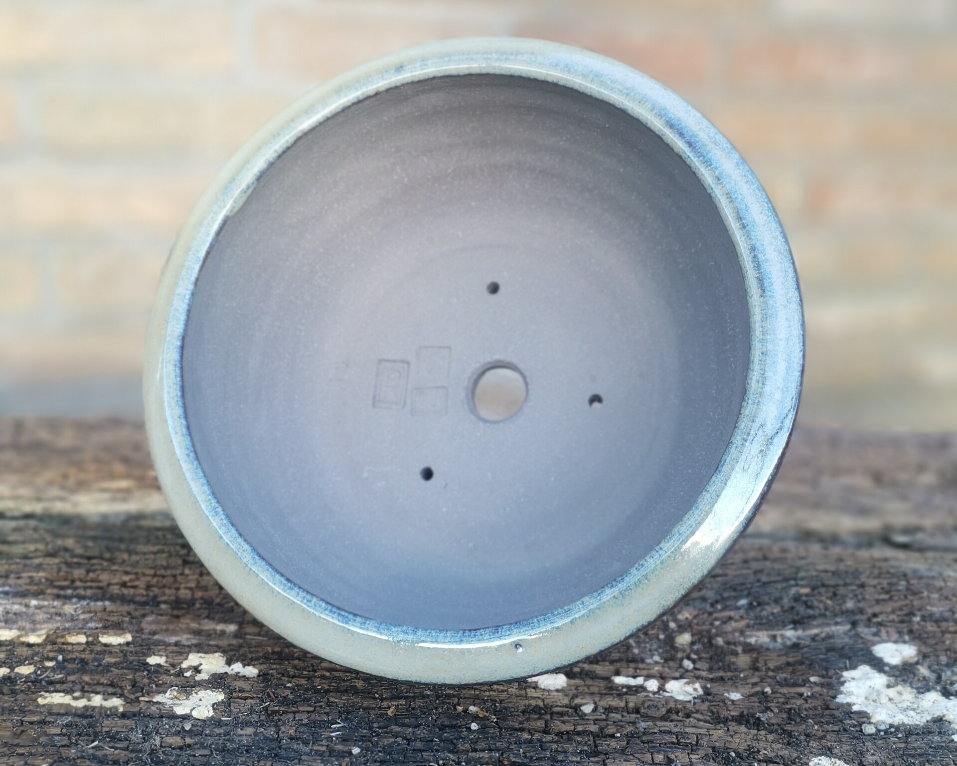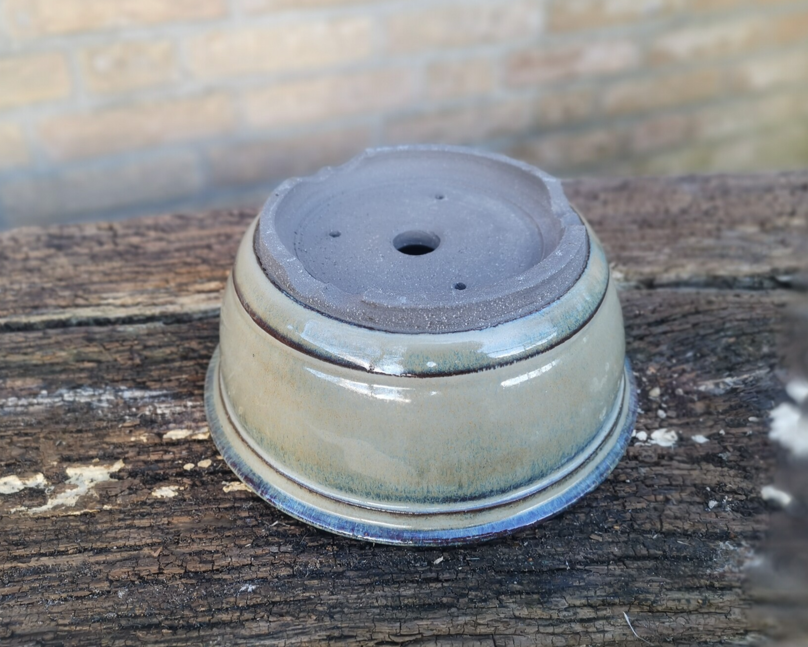 Nice shiny round pot. Peefect for a tree with shiny leaves.
